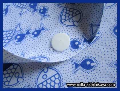 Одна часть пуговицы пришивается на левую сторону полочки, вторая — на правую.