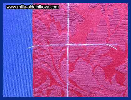 На линию середины левой части полочки (женская одежда) укладываем отрезок ленты.