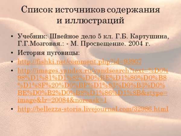 - http://favoritka.moy.su/publ/istorija_mody_i_kostjuma/istorija_i_interesnye_fakty_o_pugovicakh_2/3-1-0-23