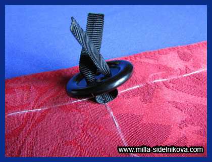 И было бы хорошо, чтобы отрезок этот был с ткаными поперечными рубчиками. Например, это может быть репсовая лента. Такая лента будет значительно крепче удерживать пуговицу своей завязкой.