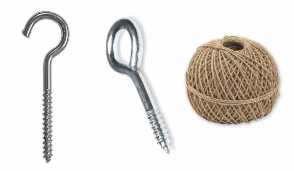 (анкерный крючок/круговой шуруп и льняная веревка она же джутовый шпагат)