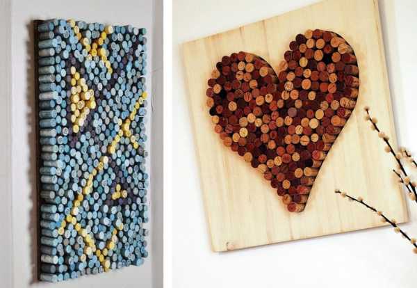 Еще пробки от вина можно красить и выкладывать из них интересные фигуры и узоры.