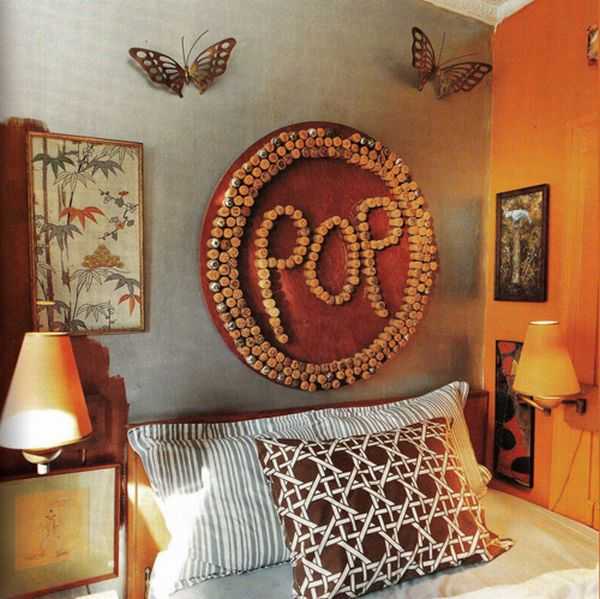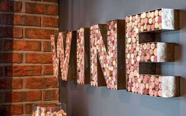 Если в интерьере используются крупные буквы или слова, пробки помогут продолжить его тематику. Из них достаточно просто собирать цифры, и даже целые фразы, которые можно расставить поверх свободной полки либо развесить вдоль стен (в зависимости от их размера).
