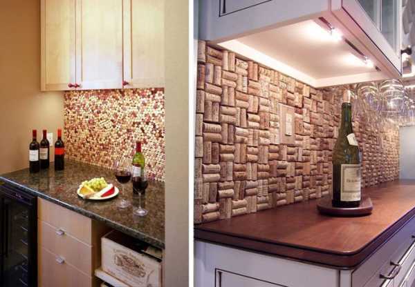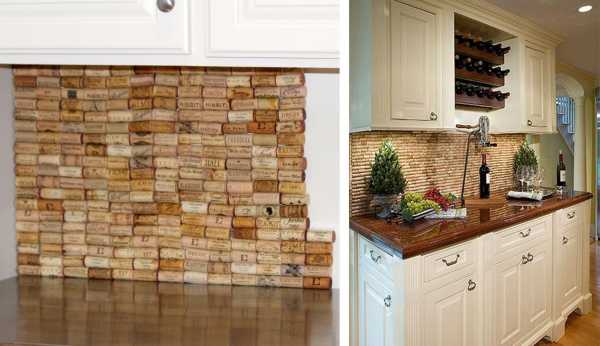 Как мы уже говорили, винные пробки – экологически чистый материал, а потому при желании их можно смело использовать в декоре рабочего фартука на кухне.