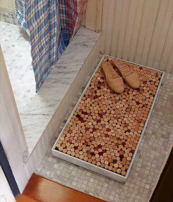 Коллекция пробок может приносить вполне ощутимую пользу. Замените стандартный коврик у двери или в ванне на сделанный своими руками. Мы уверены, что гости будут приятно удивлены, если первое, что их будет встречать на пороге вашего дома, вызовет мысль: «А ведь это отличная идея!» Для этой поделки вам понадобится лишь клей-момент и немного терпения.