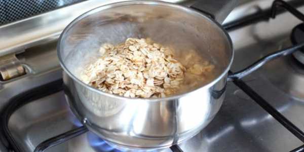 - Выложить туда овсянку, на слабом огне варить ее примерно пять минут.
