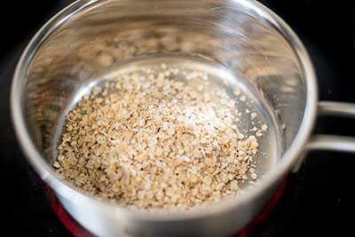 В небольшой сотейник или кастрюлю выложите овсяные хлопья, примерно 50-60 г.