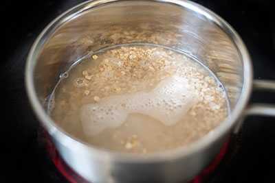- Затем слейте воду, переложите в кастрюлю и залейте водой в соотношении 3 стакана жидкости на 1 стакан крупы.