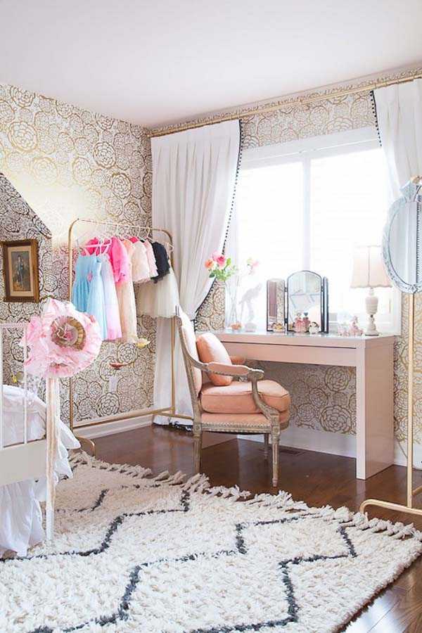 Конечно, если вы продумываете дизайн комнаты до мелочей, то нужно будет и тщательно подбирать одежду, которую вы развесите, чтобы она гармонировала с интерьером.