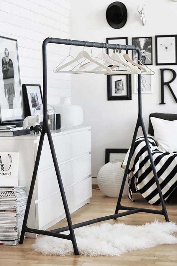 Понятно, что шкаф (или гардеробная) – лучшее хранилище вещей, специально для этой цели созданное. Но как быть, если вы, например, живете в съемной или очень маленькой квартире, где шкафа нет? Или он есть, но в него не помещаются все вещи? К счастью, имеется несколько альтернатив, которые вполне могут заменить или дополнить привычный шкаф.