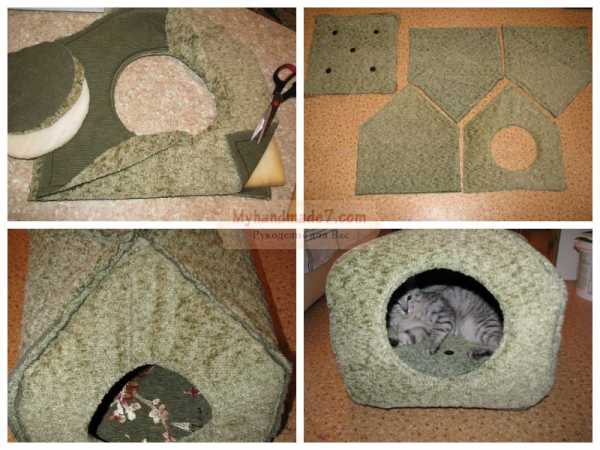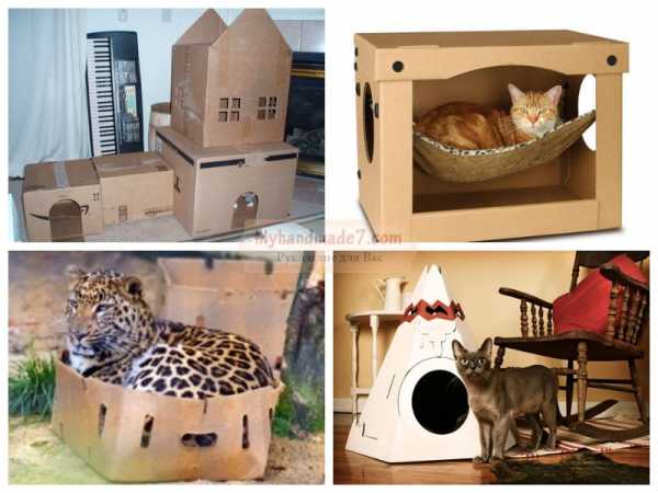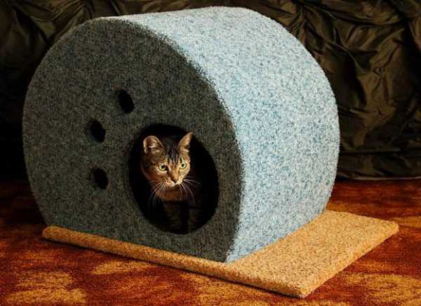 Есть и другие решения. В зоомагазинах продаются домики для кошек. Можно, купив приглянувшуюся модель, обтянуть ее все тем же ковровым покрытием. В результате Ваш любимец обзаведется не только уютным домиком, но получит когтеточку для приятного ему занятия. Также можно сделать оригинальный домик-когтеточку для своей кошки и своими руками, проявив немного фантазии (см. фото). Тем более что всеми необходимыми навыками Вы уже владеете.