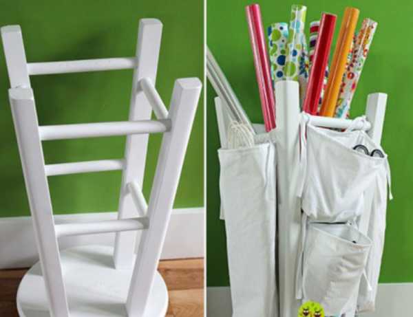 Перевернутый старый табурет в роли органайзера: