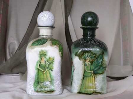 7. Стекло. Банки и бутылки, особенно причудливой формы, сейчас очень можно расписывать или оформлять в технике декупаж.