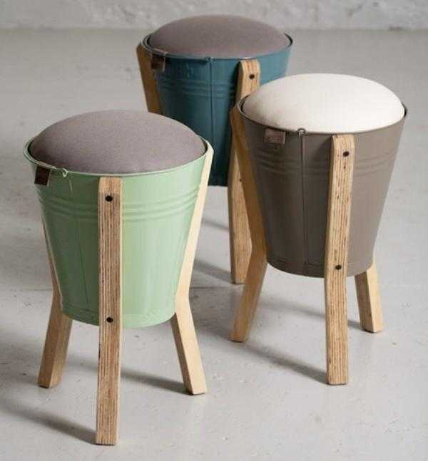Возможно, идея сделать табурет из обшарпанного ведра покажется вам сомнительной, но смысл подобных проектов в том, чтобы продемонстрировать: старые вещи могут быть полезными и красивыми. Представьте себе, декораторы специально посещают барахолки и блошиные рынки в поисках птичьих клеток, лыж, ракеток, деревянных весел, старинных металлических решеток и прочей утвари, подбирая их для дизайна далеко не самых дешевых проектов.