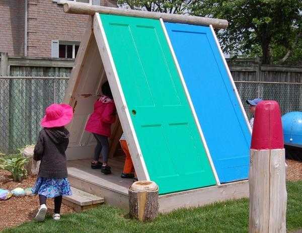 Садовые качели из дверей.