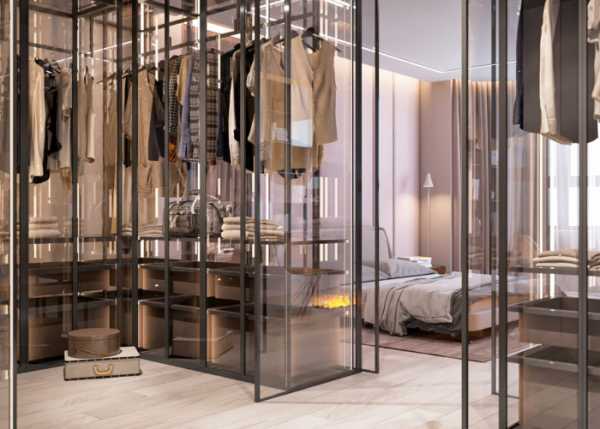 Гардероб — это комната, в которой нет окон, поэтому важно заранее позаботиться об освещении. Правильно подобранное освещение позволит гладить в этой комнате, правильно комбинировать вещи, вовремя обнаруживать наличие пятен.