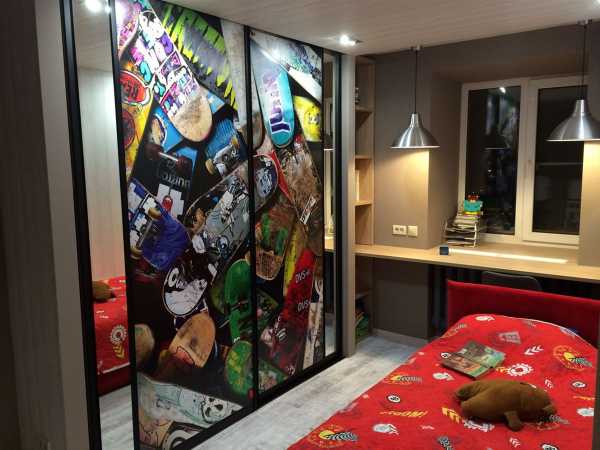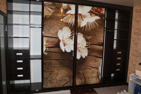 Некоторые мастерские печатают на пластиковую основу фасада встроенной гардеробной фото любого размера.