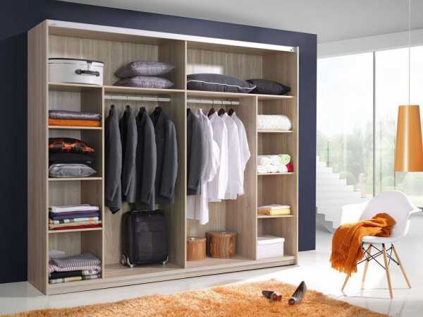 Наполнение гардероба осуществляется согласно рекомендованным принципам наполнения шкафов и гардеробных. Это значит, что желательным будет разделение внутреннего его пространства на горизонтальные зоны и дополнительные отсеки. Это, конечно же, не является аксиомой, так как каждый проект хранилища для вещей, по сути, индивидуален, но такие рекомендации помогут оптимально использовать пространство шкафа.