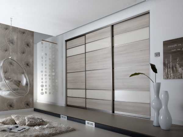 Основными материалами для организации передней панели любого шкафа обычно используют дерево, стекло, металл, пластик и ДСП. Стандартными и самыми доступными являются фасады, приготовленные на основе плит ДСП. Их легко обрабатывать, соответственно доступно большее количество их форм:- стеклянные фасады встроенных гардеробов помогут визуально расширить помещение, сделать его более просторным. Если сделать внутри гардеробной декоративную подсветку, то комната приобретет уникальный образ. Стеклянные фасады в большинстве случаев подходят к интерьерам в стиле хай-тек или модерн. Популярные сейчас матовые стекла (лакомат) не позволят посторонним глазам определить, что лежит в шкафу, однако станут полезными в ориентировании для хозяина. Прозрачные и полупрозрачные материалы продлят жизнь подвижных механизмов за счет более редкого их использования во время поиска необходимой вещи;