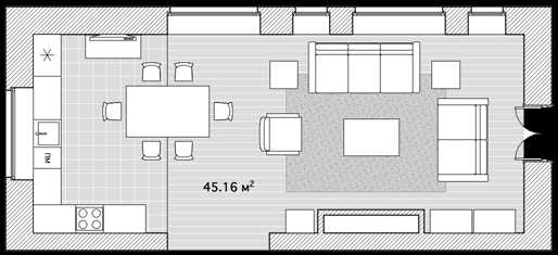 Зонирование- Появляется возможность функционально зонировать пространство и переместить обеденную зону из кухни на более просторное место.