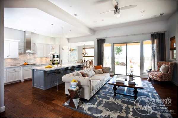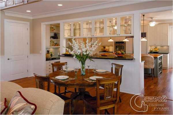 Объединение кухни с комнатой — кухня-гостиная (+ фото, планировка)