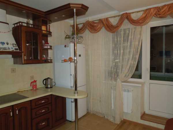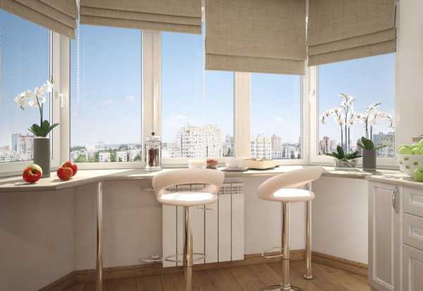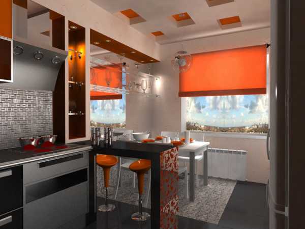 Популярным дизайнерским приемом, направленным на увеличение площади малогабаритной кухни, является обустройство барной поверхности вместе нахождения балконного блока. При данном варианте основанием стойки бара служит участок стены, оставшийся после демонтажа балконной двери и оконного проема.