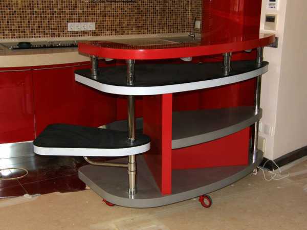 Поворотная барная стойка представляет собой очень удобный предмет кухонной мебели, проектирование которого нередко требует индивидуального подхода. Поверхность такой стойки должна легко помещаться под столешницей одной из кухонных рабочих зон и плавно выдвигаться, благодаря особому поворотному механизму. Этот вариант очень удобен, поскольку позволяет значительно повысить функциональность пространства.