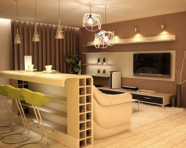 Устанавливая светильники в зоне мини-бара нужно полностью изолировать все провода в целях безопасности. Можно комбинировать несколько вариантов подсветки установив специальные переключатели.