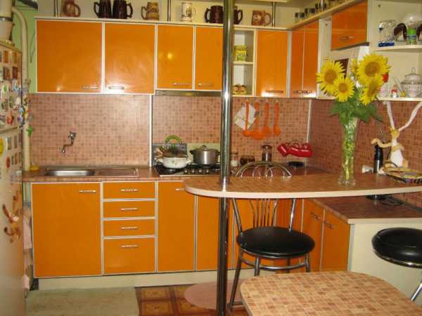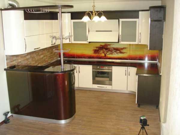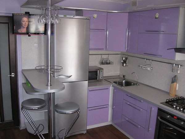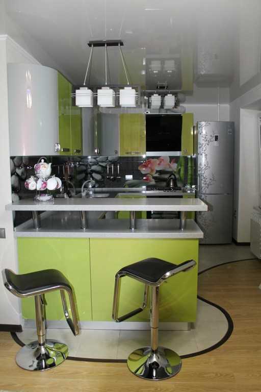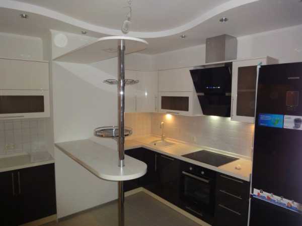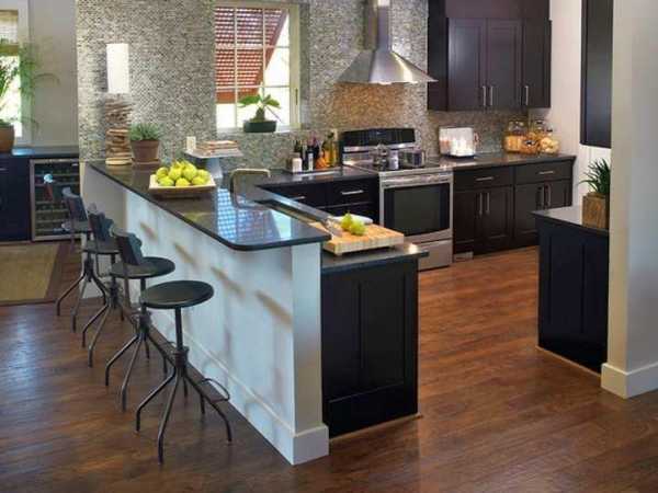 Барная стойка для кухни уместна как на просторных площадях, так и в малогабаритных помещениях. Дизайнеры рекомендуют использовать барную поверхность при угловой планировке маленькой кухни. Интерьерный элемент придает помещению завершенный вид, делает пространство более комфортным. Стойка при Г–образной планировке может стать полноценной заменой громоздкому обеденному столу.