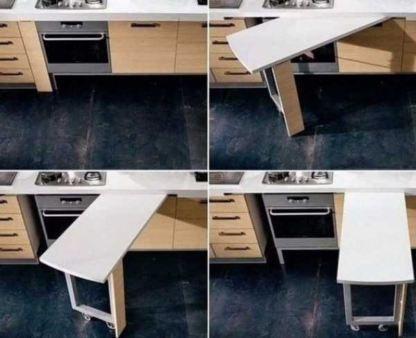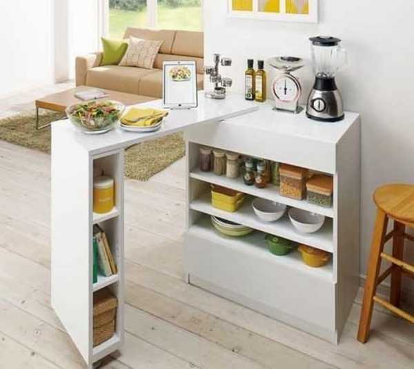 Небольшие выдвижные или складные поверхности будут просто находкой для миниатюрных кухонь