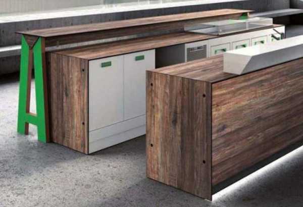 Столешницы из натурального дерева – изящны, экологичны, приятны на ощупь и долговечны, но при этом дорогие. Стойки из дерева требуют регулярного ухода. Для сохранения структуры и дополнительной защиты материала, деревянные поверхности лакируют либо покрывают краской.