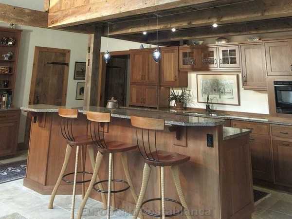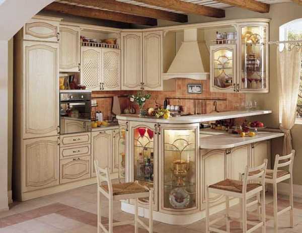 Классические модели используются в качестве предмета меблировки независимого от конструктивных элементов помещения и кухонного гарнитура. Интерьер кухни с барной стойкой в классическом исполнении целесообразен на просторных площадях. Как правило, самостоятельный элемент занимает центральную часть помещения.