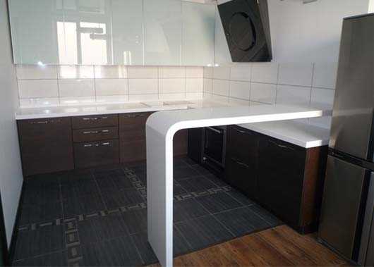 Натуральный камень славится своей долговечностью и эстетической привлекательностью. Однако природный материал не лишен недостатков, так мраморные столешницы боятся пищевых красителей, жира и кислых сред, а гранит может излучать радиацию. Замечательной альтернативой служат столешницы из искусственного камня, они не токсичны, износоустойчивы, красивы и стоят на порядок дешевле.