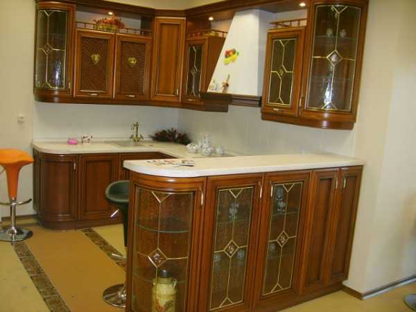 Традиционно барстойку располагают параллельно либо перпендикулярно основной линии кухонного гарнитура. Кухонный гарнитур с угловым расположением барной поверхности является оптимальным вариантом для маленьких помещений. Использование угловой стойки в качестве продолжения основной столешницы. Такое расположение расширяет функциональную площадь, хозяйка может использовать дополнительный фрагмент столешницы для размещения уже готовых блюд. Столешница-придаток может служить в качестве обеденной зоны.