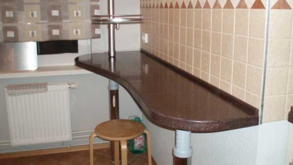 Ширина обычной конструкции равна 30 – 35 см или зависит от особенностей мебели на кухне. Если столешница предназначена для замены обеденного стола, то ее ширина находится в пределах от 50 до 80 см. Здесь нет четких правил и ограничений, важно соблюдать лишь то, чтобы от опоры или стены до ног сидящих людей выдерживалось расстояние в 25 см.