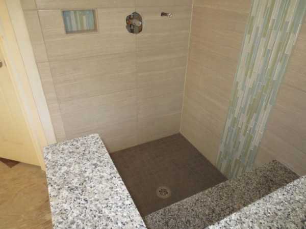 Зонирование в ванной при помощи плитки