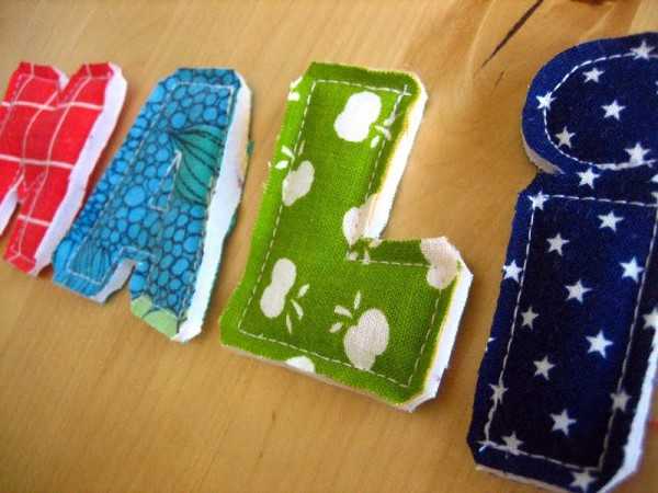 Можно сшить буквы на машинке, выворачивая их, чтобы шов остался внутри.