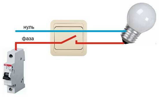 Так как в выключателе размыкается только фазный провод, то иногда значительно проще взять от розетки только фазный провод. Нулевой же провод проще подключить непосредственно в ближайшей к светильнику распределительной коробке.
