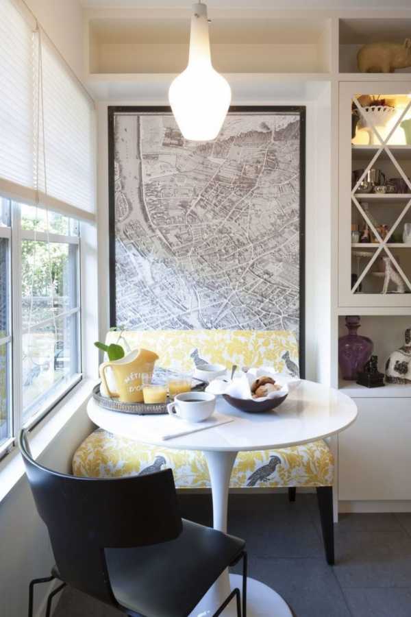 Совершенно не обязательно покупать на кухню готовый диван — можно сделать его из широкой скамьи или из сдвинутых банкеток.