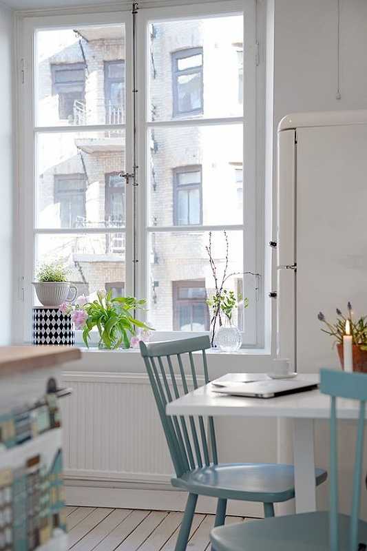 В крайнем случае вариант с расположением холодильника вне кухни также поможет спасти ситуацию. Если поставить холодильник в коридоре или на балконе, путь до него значительно увеличится, однако освободится дополнительное пространство на маленькой кухне – для удобной работы или обеденной зоны, в которой смогут собираться все члены семьи сразу.