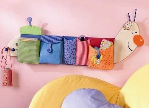 Для хранения плоских предметов отлично подойдут, сделанные из плотного полиэтилена или ткани, кармашки. Такие кармашки, как правило, вешают на стену. Особенно хорошо они подойдут для рабочей или творческой зоны детской комнаты. Кармашки для хранения детских вещей можно без труда сделать своими руками, подобрав самостоятельно подходящий размер и цвет.