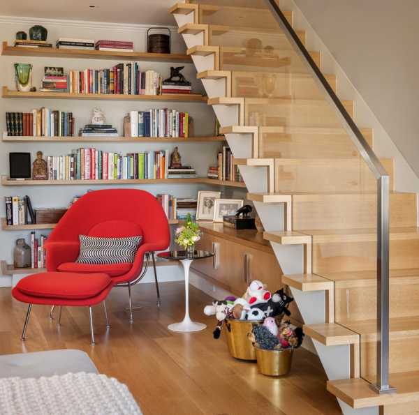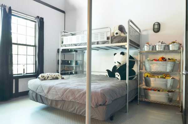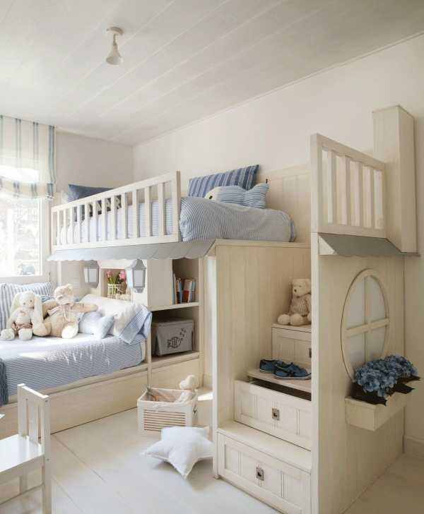 Даже ступеньки на второй уровень кровати могут эксплуатироваться в качестве мест для хранения игрушек.