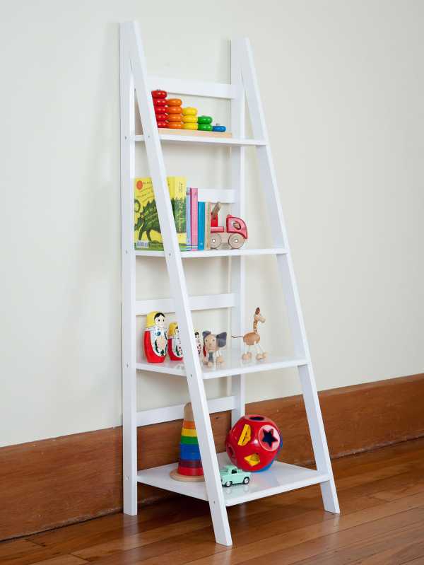 Идея использовать открытые стеллажи в детской комнате некоторые родители не приемлют. Так как все детские вещи, которые родители хотят спрятать, в таких стеллажах находятся у всех на виду. Но такая проблема решается легко и быстро. На полки можно поставить плетеные корзины или пластиковые ящики с ручками, в которые можно сложить все необходимые детские вещи. К тому же такие ящики, контейнеры и коробки можно приобрести в любом магазине. Полки, на которых не будет ящиков можно занять детскими книгами. Удачным приобретением будет высокий открытый стеллаж с небольшой ступенькой. Так ребенок сам сможет достать необходимую ему игрушку с верхних полок. Главным условием выбора такого стеллажа является устойчивость конструкции и надежное крепление.