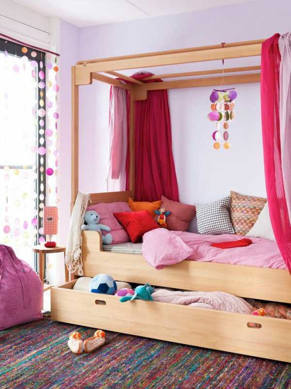 Купите детскую кровать с выдвижными ящиками, и вы почувствуете, насколько это удобно. Ящики могут быть в один, да или даже три яруса.