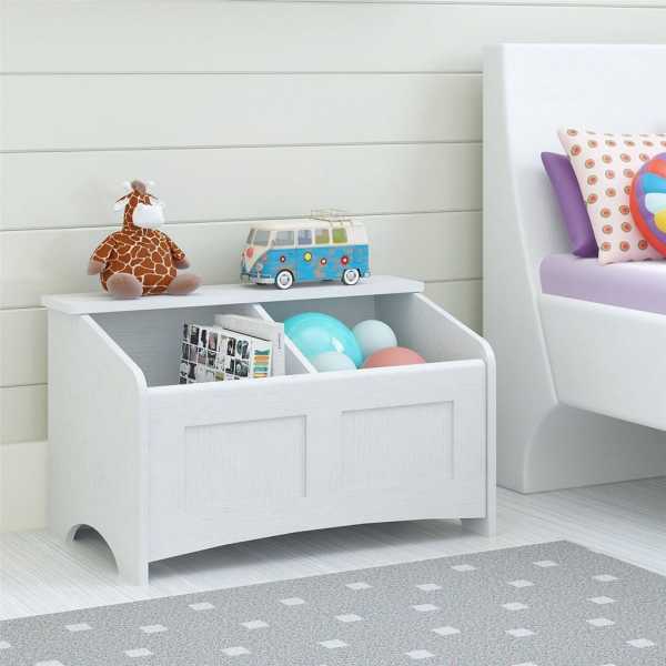 Удобным вариантом может стать мебель, в которой есть ящики для хранения: диванчики, кушетки, пуфики. Эти предметы будут создавать дополнительное резервное пространство для размещения игрушек.