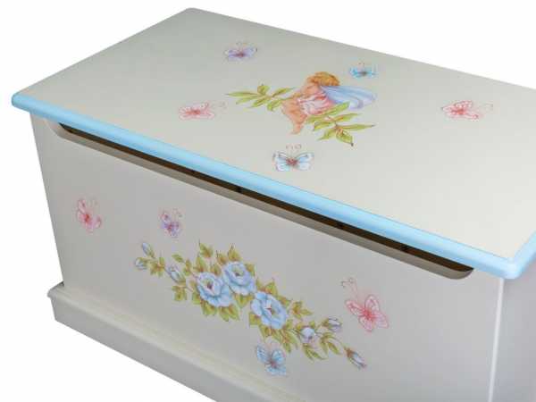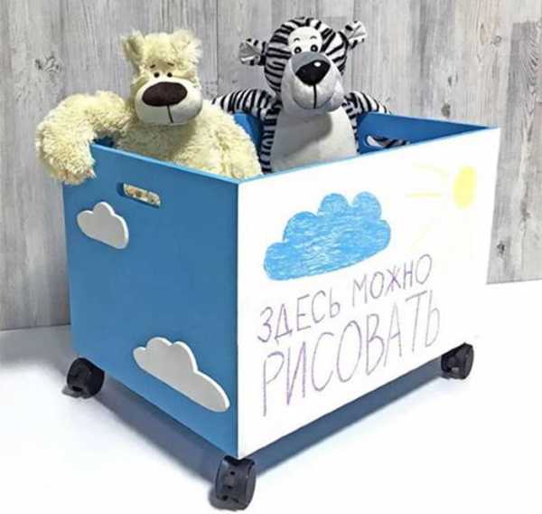 Деревянный ящик можно смастерить своими руками и красиво его украсить. В нем поместится целая батарея различных предметов для игр.