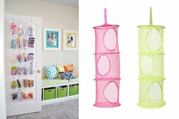 Пластиковый органайзер на дверь также пригодится для хранения мелких и средних предметов. В таком приспособлении ребенок видит нужные ему игрушки, при этом нет необходимости перелопатить весь ящик, чтобы найти одну деталь.