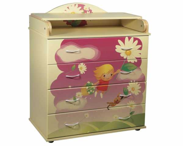 Кстати, вовсе не обязательно покупать комод в детском отделе. Можно приобрести классическую мебель, а после уже самостоятельно ее украсить детскими самоклеящимися машинками или принцессами. Когда ребенок вырастет, их можно будет снять.