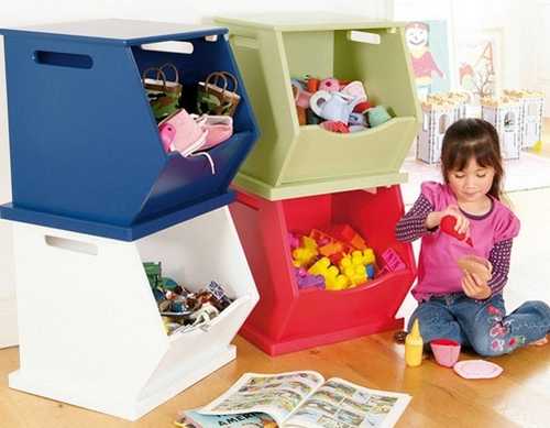 - Ёмкости для хранения игрушек должны быть с крышками. Это гигиенично и удобно, так как можно сложить их одну на другую, что поможет сохранить пространство.