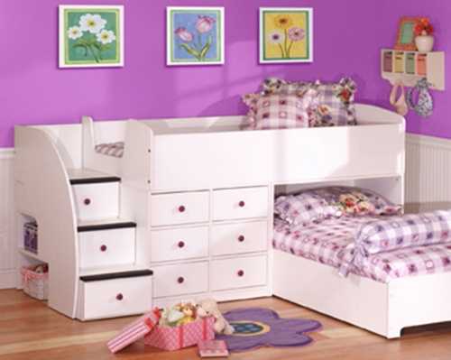 - Кровати-чердаки – как ни странно, даже спальное место может стать неким «домиком» для плюшевых мишек, кукол и роботов. Наверху малыш спит, а внизу отдыхают его любимые игрушки.